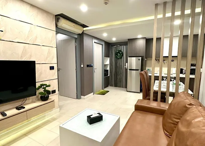 The Prim Grand Condo Wongamat N103 - Spacious Apartment Near The Sea Pattaya, di 47 m², si trova a soli 2 km dal Municipio di Pattaya e offre strutture termali come una sauna. C'è il Santuario della Verità a 13 minuti a piedi dall'appartamento.
